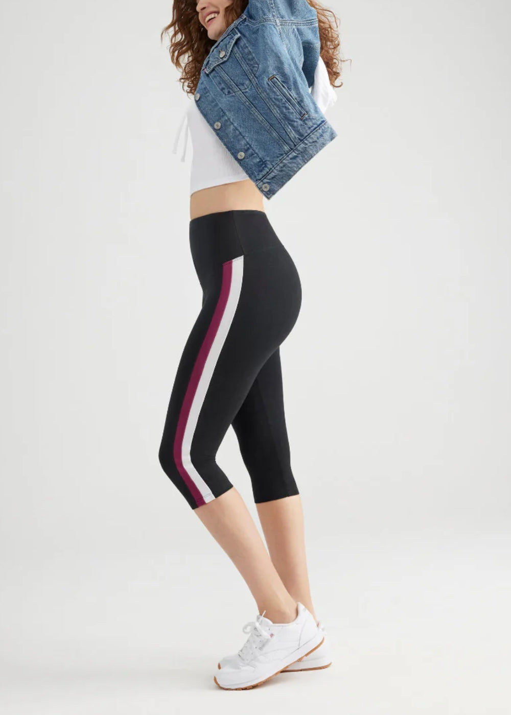 Talia Crop Capri Shaping Legging - 360Sculpt™ Cotton - Black with Blackberry/White Stripe